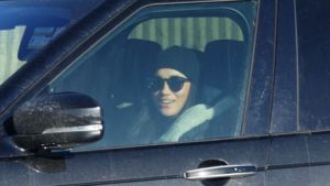 En este look de Meghan Markle lo importante fue el peinado, y es que, definitivamente nunca la hubiéramos visto con un medio “bun” desarreglado. En cuanto a las prendas, una chamarra abultada con una maxi bufanda de tela polar, acompañada con lentes oscuros.