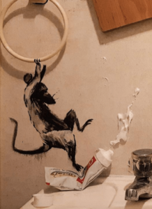 Las ratas suelen ser una constante imagen en su obras desde que comenzó a pintar en las calles de Bristol, lugar del cual se sospecha su origen.