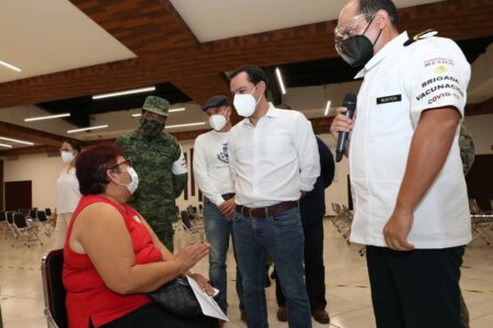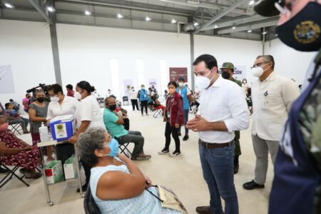 En Yucatán, ya se han aplicado 184,500 vacunas contra el Coronavirus entre adultos mayores -El Gobernador Mauricio Vila Dosal visitó el módulo de vacunación instalado en la Universidad Modelo de Mérida para constatar que este proceso se lleve a cabo en orden y con agilidad. – En la jornada de ayer miércoles, en el interior del estado se aplicaron 2,137 vacunas Cansino, 2,193 de Sinovac y 1,988 primeras dosis. -También se administraron 2,682 segundas dosis en Progreso, Temozón y Tixkokob. Mientras que, en Mérida, se administraron de 8,464 vacunas. Mérida, Yucatán, 15 de abril de 2021.- Al día de ayer, …