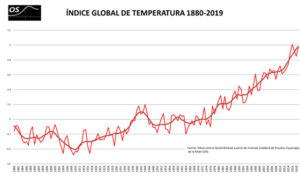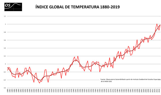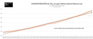 Para hacernos una idea de lo urgente que es tomar medidas, el Observatorio de la Sostenibilidad ha elaborado estos dos gráficos, en los que se aprecia la subida de la temperatura global y la acumulación de CO2 en el mundo según datos del Observatorio de Mauna Loa.