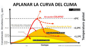 Para que estos efectos se manifiesten, y que para que tengan efectos duraderos y no puntuales como en anteriores crisis es necesario según el investigador R. Keeling de la Universidad de San Diego, “el uso global de combustibles fósiles tendría que disminuir en un 10% durante un año completo para impactar claramente las concentraciones de CO2 en la atmósfera” y, entonces ya se observará un descenso en la concentración de CO2 en la atmósfera que previsiblemente tendrá como consecuencia la ansiada disminución de temperatura en la atmósfera y la posibilidad de cumplir con el objetivo de 1,5 grados de temperatura compatible con los ecosistemas tal y como los conocemos. Fernando Prieto, del OS, ha señalado que “para doblar la curva del clima son necesarias reducciones de emisiones continuadas en el tiempo con una estructura económica descarbonizada que genere y mantenga empleo y no por una crisis sanitaria”. El informe del OS llama la atención sobre la oportunidad única que vivimos para que cuando se produzca la recuperación económica, lo hagamos hacia una economía verde, con energías renovables en vez de hacia una economía basada en los combustibles fósiles y contaminantes. Y que, por primera vez en la historia, se aplane la curva del clima.