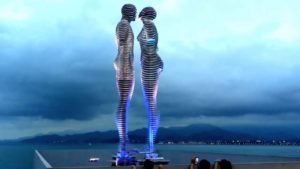 Hermosa: “Hombre y Mujer” es una obra de casi 40 metros de alto, diseñada por la escultora Tamara Kvesitadze. Se trata de una escultura móvil hecha de acero y localizada en la ciudad costera de Batumi, en Georgia.