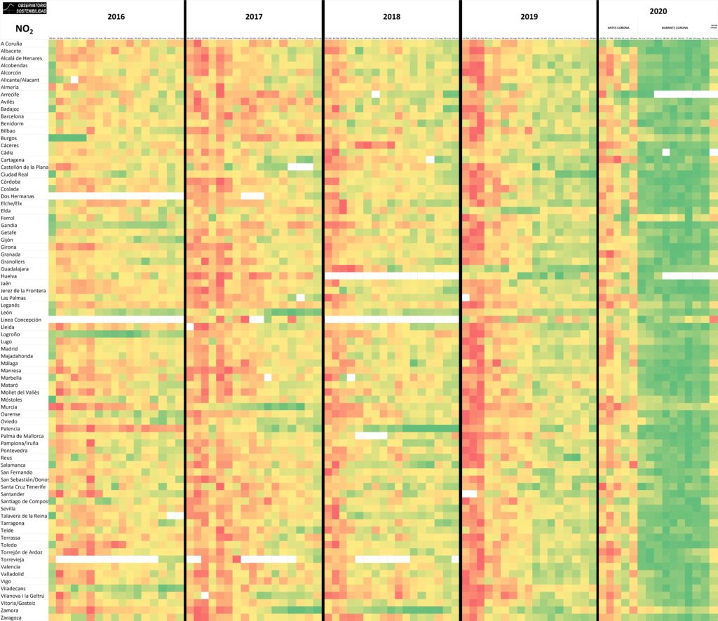 En el Observatorio Sostenibilidad han recogido datos de los Índices de Calidad del Aire (ICA) relativos a las mayores cinco ciudades del país (Madrid, Barcelona, Valencia, Sevilla y  Bilbao); información de la Agencia Europea de Medio Ambiente relativos a 74 ciudades que suponen unos 18,3millones de personas, casi el 40% de la población del país, y datos de los modelos del Barcelona SuperComputingCenter. Con ellos, se puede llegar a la conclusión de:
