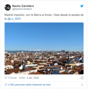 Fernando Prieto y Carlos Alfonso, de Observatorio Sostenibilidad,  levantan la voz para pedir que la nueva normalidad exija cielos limpios. De ese modo, este histórico experimento ecológico  habría servido para algo.