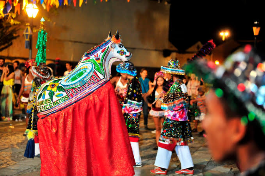 “La celebración de Bumba-meu-boi surgió en este contexto de ranchos ganaderos y reunió influencias africanas, como el buey geroa, traído por el esclavo y la población europea, como la corrida de toros española, los festivales portugueses y franceses”