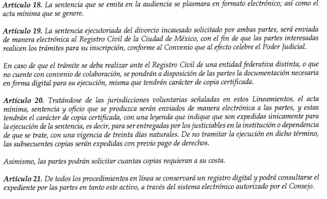 Los muchachos del Consejo de la Judicatura CDMX dieron luz verde a los Lineamientos para la implementación de procedimientos en línea y la celebración de audiencias a distancia en Materia Civil y Familiar del Poder Judicial capitalino —y con ello avanzar en trámites de común acuerdo.