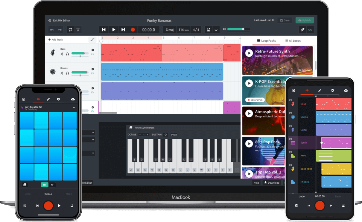 No necesitas teclados MIDI ni una interfaz de audio para usar Bandlab, pero si ya los tienes, puede usarlos para controlar instrumentos virtuales y grabar audio directamente en el programa. Lo mejor de todo, cada sesión de Bandlab también se puede hacer colaborativa, para que otros usuarios puedan saltar para modificar ideas o establecer nuevas desde la sesión sin tener que mandar audio o las transferencias de datos con archivos de gran tamaño.