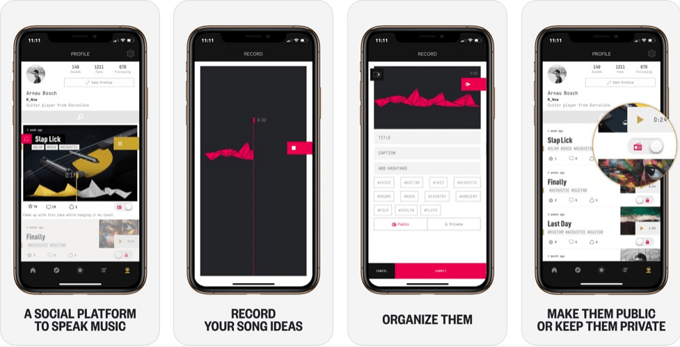 Si quieres compartir nuevas ideas rápidamente SoundStorming es para ti. Esta aplicación para iOS te da chance de grabar audio un minuto a la vez, lo que la hace muy adecuada para bajar melodías, progresiones de acordes y otros fragmentos musicales en el momento de la inspiración. Lo mejor de esta aplicación es que puedes publicar estas grabaciones en tu perfil, lo que las abre a la colaboración con toda la comunidad de SoundStorming.