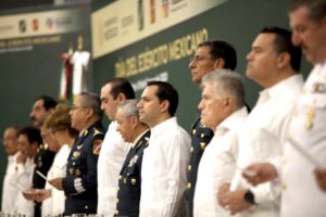 En la ceremonia estuvieron presentes los presidentes de la Junta de Gobierno y Coordinación Política del Congreso del Estado, Felipe Cervera Hernández y del Tribunal Superior de Justicia, Ricardo Ávila Heredia; el Jefe del Estado Mayor de la 10 Región Militar, General de Brigada Armando Montaño Ponce; el comandante de la 32 Zona Militar, el General de Brigada Andrés Aguirre O. Sunza; el alcalde de Mérida, Renán Barrera Concha; el comandante de la IX Zona Naval, vicealmirante Carlos Lanz Gutiérrez; el titular de la Secretaría de Seguridad Pública, Luis Felipe Saidén Ojeda; el Fiscal General del Estado, Wilbert Cetina Arjona; el delegado de la Fiscalía General de la República, Juan Manuel León León y los Generales de División retirados, Virgilio Méndez Bazán y Humberto Guillermo Aguilar.