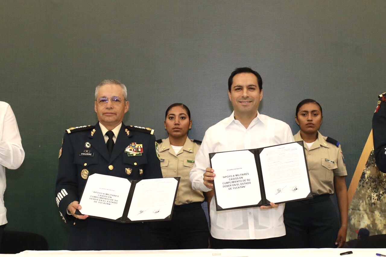 “El día de hoy venimos a reconocer con hechos lo valioso que consideramos el trabajo que realizan por Yucatán. Con este acuerdo es como queremos agradecer y reconocer el gran trabajo que realiza el Ejército Mexicano, la Fuerza Aérea y la Marina Armada de México que por su calidad y compromiso son identidad de nuestra nación. Los yucatecos estamos orgullosos de tener unas fuerzas armadas tan identificadas con los ciudadanos y con el pueblo yucateco”, aseveró Vila Dosal.