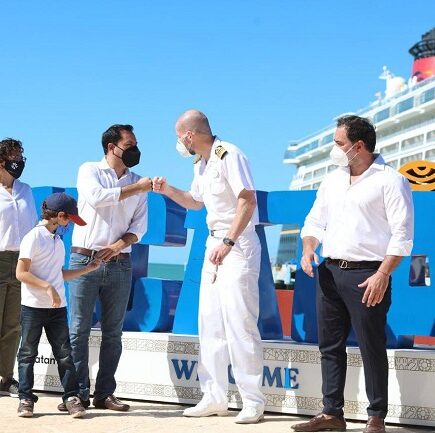 Este sector recupera su dinamismo, al arribar a Progreso dicha embarcación de Disney Cruise Line, con más de 1,300 viajeros y 962 tripulantes -El Gobernador Mauricio Vila Dosal y el capitán del navío, Andrew McRonald, realizan intercambio de placas conmemorativas por este logro. -A la fecha, han entrado al estado 21 cruceros, desde el pasado mes de julio, cuando se reactivó la actividad de este segmento. Progreso, Yucatán, 24 de diciembre de 2021.- El turismo de cruceros recupera su dinamismo, al recibir Yucatán, por primera vez, el crucero de lujo Disney Wonder de la naviera Disney Cruise Line, con un …