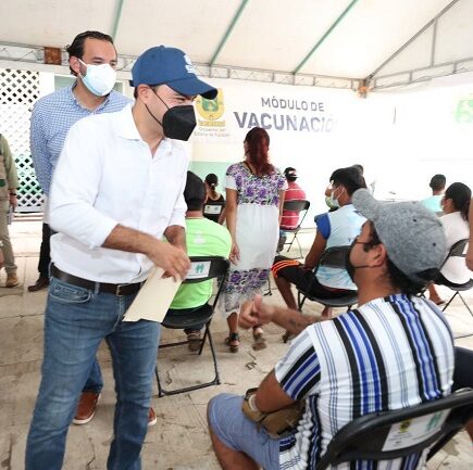 Vila Dosal acudió al municipio de Tecoh para constatar el arranque de aplicación de segundas dosis contra Covid-19 a personas de 18 a 29 años