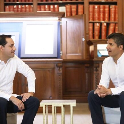 Puebla de Zaragoza 15 de junio de 2023.- El presidente municipal de Puebla, Eduardo Rivera Pérez,elogió el trabajo y buen gobierno que Mauricio Vila Dosal, Gobernador de Yucatán, ha realizado a lo largo de su gestión, el cual consideró debe ser replicado en todo el país. En rueda de prensa con el Gobernador previo a inaugurar la muestra Yucatán Expone en la capital poblana, Rivera Pérez destacó que Yucatán va por buen rumbo y los poblanos deben seguir ese ejemplo. El alcalde reconoció que anteriormente buscó a Vila Dosal para saber sobre la Ventanilla Digital, estrategia que ha tenido mucho …