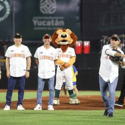 Lanzó la primera bola, lo cual dio paso al inicio de la gran fiesta del Rey de los Deportes. Mérida, Yucatán, 25 de abril de 2023.- El Parque “Kukulcán Álamo” vuelve a cobrar vida en una fiesta llena de emociones, deporte y sana convivencia, al iniciar la temporada 2023 de la Liga Mexicana de Béisbol (LMB) en Yucatán, acto que encabezó el Gobernador Mauricio Vila Dosal. Con un estadio luciendo sus mejores galas, Vila Dosal, acompañado de los presidentes del Consejo de Administración, Juan José Arellano Hernández, y Ejecutivo, Erick Ernesto Arellano Hernández, ambos de los Leones, lanzó la …
