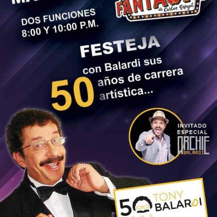 Tony Balardi festeja en la Ciudad de Mérida sus 50 años de carrera artística en compañía de su hijo Archie Balardi. Será una noche de risas para todas las generaciones. Los mejores chistes, el mejor Stand Up y las grandes ocurrencias de la Familia Balardi que los han hecho brillar en programas de televisión producidos por Televisa (Telehit), Univisión (Sábado Gigante) y Comedy Central. Yucatán siempre en el corazón de Tony Balardi, ven y festeja con él este 14 de Marzo en el Teatro Fantasio.
