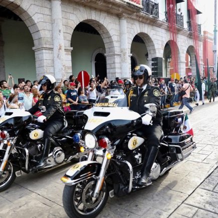 Mérida, Yucatán, 16 de septiembre de 2019.- Un total de 5,113 elementos recorrieron las principales calles de Mérida durante el desfile cívico-militar conmemorativo al 209 aniversario del inicio de lucha por la Independencia Nacional, encabezado por el Gobernador Mauricio Vila Dosal y que concluyó sin novedad. Desde el balcón central del Palacio de Gobierno, Vila Dosal presenció el acto cívico, junto con su esposa María Eugenia Ortiz Abraham y sus hijos Alejandrina, Mauricio y Santiago, autoridades civiles y militares, así como las miles de familias que salieron a disfrutar de los contingentes. Minutos antes de las 8 de la mañana, …