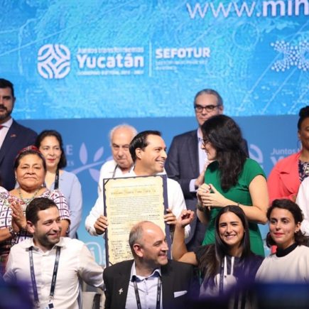 Mérida, Yucatán, 22 de septiembre de 2019.- Durante 4 días, Yucatán atrajo la mirada del mundo por ser el estado anfitrión de la edición 17 de la Cumbre Mundial de Premios Nobel de la Paz, que se inició el pasado 19 de septiembre y que concluyó ayer, con una ceremonia en donde el Gobernador Mauricio Vila Dosal recibió la declaratoria, firmada por los 30 ganadores del Premio Nobel, que designó a Yucatán como un Estado de Paz. Desde el Centro Internacional de Congresos (CIC), sede de este encuentro internacional, se contó con la presencia histórica de 30 galardonados al Premio …
