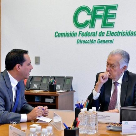 Ciudad de México, 8 de julio de 2019.- El Gobernador Mauricio Vila Dosal se reunió con el director de la Comisión Federal de Electricidad (CFE), Manuel Bartlett Díaz, para dar seguimiento a los proyectos de generación de energía eléctrica que garanticen el suministro en beneficio de todas las familias yucatecas y de la Península. Vila Dosal, quien estuvo acompañado de Ernesto Herrera Novelo, secretario de Fomento Económico y Trabajo (Sefoet), y Bartlett Díaz coincidieron en la importancia de garantizar el abasto de gas natural que se requiere para que las centrales eléctricas puedan trabajar a su máxima capacidad, por lo …