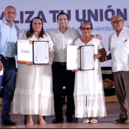 Más de 500 parejas yucatecas formalizan su unión, con el Gobernador Mauricio Vila Dosal como testigo de honor Mérida, Yucatán, 24 de noviembre de 2022.- Luego de compartir su vida por 40 años, Jorge Luis Chi Kú y María Eugenia Abán Uitz finalmente se dieron el sí, junto a otras 512 parejas yucatecas que esta tarde contrajeron matrimonio a través del Programa Formaliza tu Unión, teniendo como testigo de honor al Gobernador Mauricio Vila Dosal. En el marco de la edición 46 de la Feria Yucatán Xmatkuil 2022, Vila Dosal encabezó esta ceremonia, donde más de 500 parejas provenientes de …