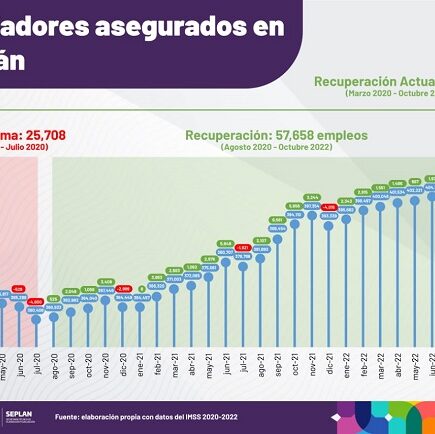 -Desde mayo de 2021, se han registrado 18 meses consecutivos de crecimiento anual en cuanto a población productiva afiliada a dicha institución. – En septiembre de 2022, Yucatán registró un incremento de 10.7% en el salario asociado a trabajadores asegurados, respecto del mismo mes de 2021. – Durante el mes de octubre de 2022, la entidad registró un incremento de 7 mil 784 nuevos empleos respecto al mes anterior, esto representó el crecimiento mensual más grande en la entidad, desde que se tiene registro. Mérida, Yucatán, 8 de noviembre de 2022.- Yucatán obtuvo un nuevo máximo histórico en generación de …