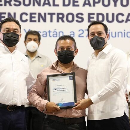 -Un total de 399 trabajadoras y trabajadores con hasta 12 años de antigüedad recibió sus bases, como reconocimiento a su esfuerzo y compromiso. -Ofreciendo justicia laboral al personal que por tantos años ha esperado esta oportunidad, Vila Dosal les entregó sus órdenes de adscripción y formatos únicos. Mérida, Yucatán, 27 de junio de 2022.- En un acto de justicia laboral, como reconocimiento al esfuerzo y la dedicación del personal de apoyo o asistencia a la educación, que por hasta 12 años, ha brindado sus servicios en planteles de nivel básico bajo contrato, el Gobernador Mauricio Vila Dosal entregó 399 plazas, …