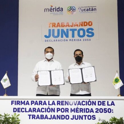 Refrendan el Gobernador Mauricio Vila Dosal y el Alcalde Renán Barrera Concha el compromiso por un Mérida con un mejor futuro para su gente – Firmaron la renovación de la Declaración por Mérida 2050 “Trabajando juntos”, agenda con visión de futuro que incluye una serie de acciones conjuntas, en diversos rubros. – Contempla seguridad, combate al rezago social, movilidad urbana, salud, mejora de espacios públicos, pavimentación, inversiones, simplificación de trámites, reforestación, empleo, mujeres y turismo. Mérida, Yucatán, 27 de abril de 2022.- Con el fin de continuar avanzando hacia un mejor futuro para los habitantes de Mérida y todas las …