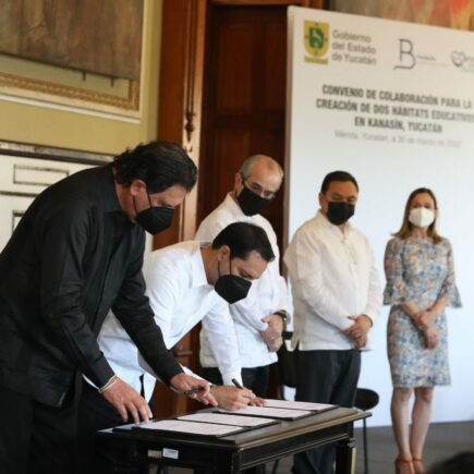 Mérida, Yucatán, 30 de marzo de 2022.- Jóvenes de yucatecos podrán acceder a espacios adecuados para una educación de mayor calidad, pues como parte de una alianza para ampliar la oferta formativa en el estado, el Gobierno del Estado y la Fundación “Alberto Baillères” firmaron un convenio, para la construcción y operación de 2 planteles en el municipio de Kanasín, uno dirigido a la enseñanza del nivel secundaria y otro, para una preparatoria técnica. En el Salón de la Historia de la sede del Poder Ejecutivo, el Gobernador Mauricio Vila Dosal y el presidente de la Fundación, Alejandro Baillères Gual, …