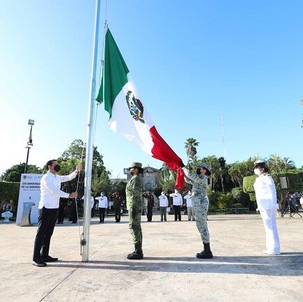 Encabezó la ceremonia por el 201 Aniversario del Día de la Bandera, desde el asta central de la Plaza Grande de Mérida Mérida, Yucatán, 24 de febrero de 2022.- Al encabezar la ceremonia por el 201 Aniversario del Día de la Bandera, el Gobernador Mauricio Vila Dosal hizo un llamado a continuar trabajando en unidad y coordinación, anteponiendo el interés nacional y el bien común a cualquier interés particular, para traer más y mejores oportunidades para la gente, y que a Yucatán y México les vaya bien. Desde el asta central de la Plaza Grande de Mérida, Vila Dosal, acompañado …
