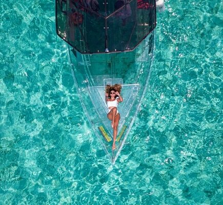 Recorre el azul turquesa del Mar Caribe que rodea a la Isla Cozumel a bordo de una lancha transparente