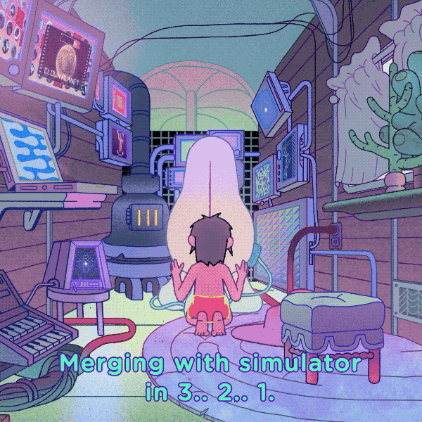 Para tener materiales que presentar a su único seguidor, viaja a planetas y entrevista a alguno de sus habitantes. ¿Cómo lo hace? A través de una computadora que lo invita a distintas simulaciones percibidas en una especie de vagina/máquina.